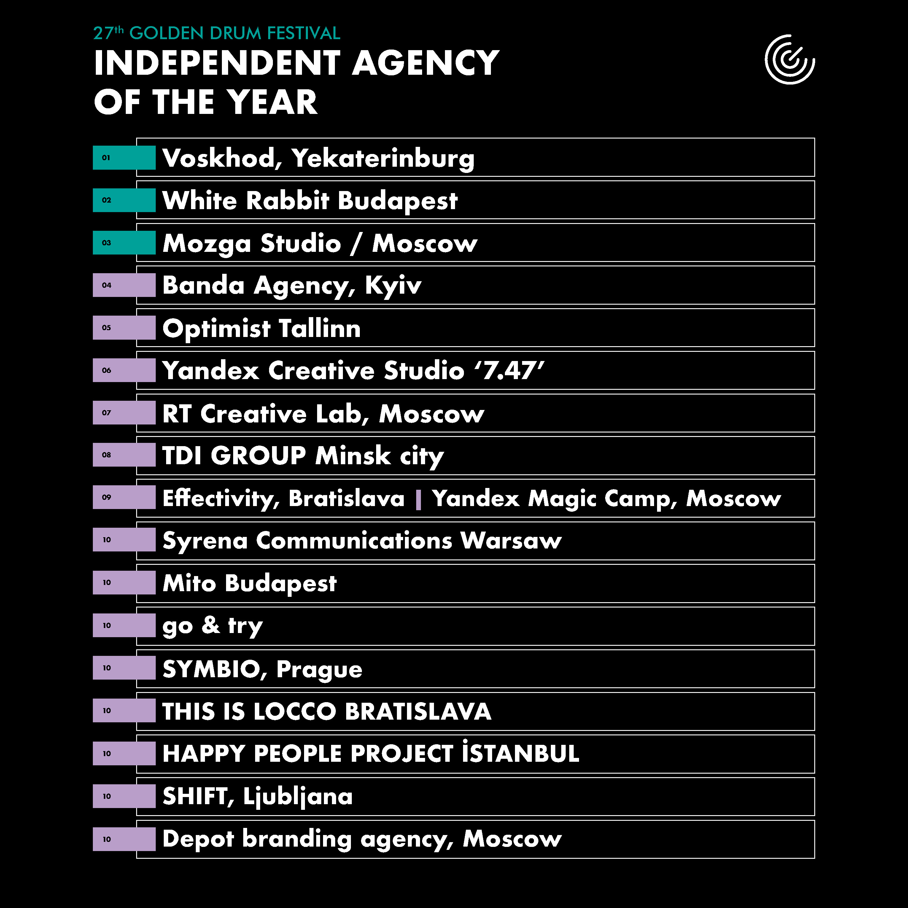 Nagrodę dla najlepszej niezależnej Agencji Roku otrzymała agencja Voskhod z Jekaterynburga w Rosji.