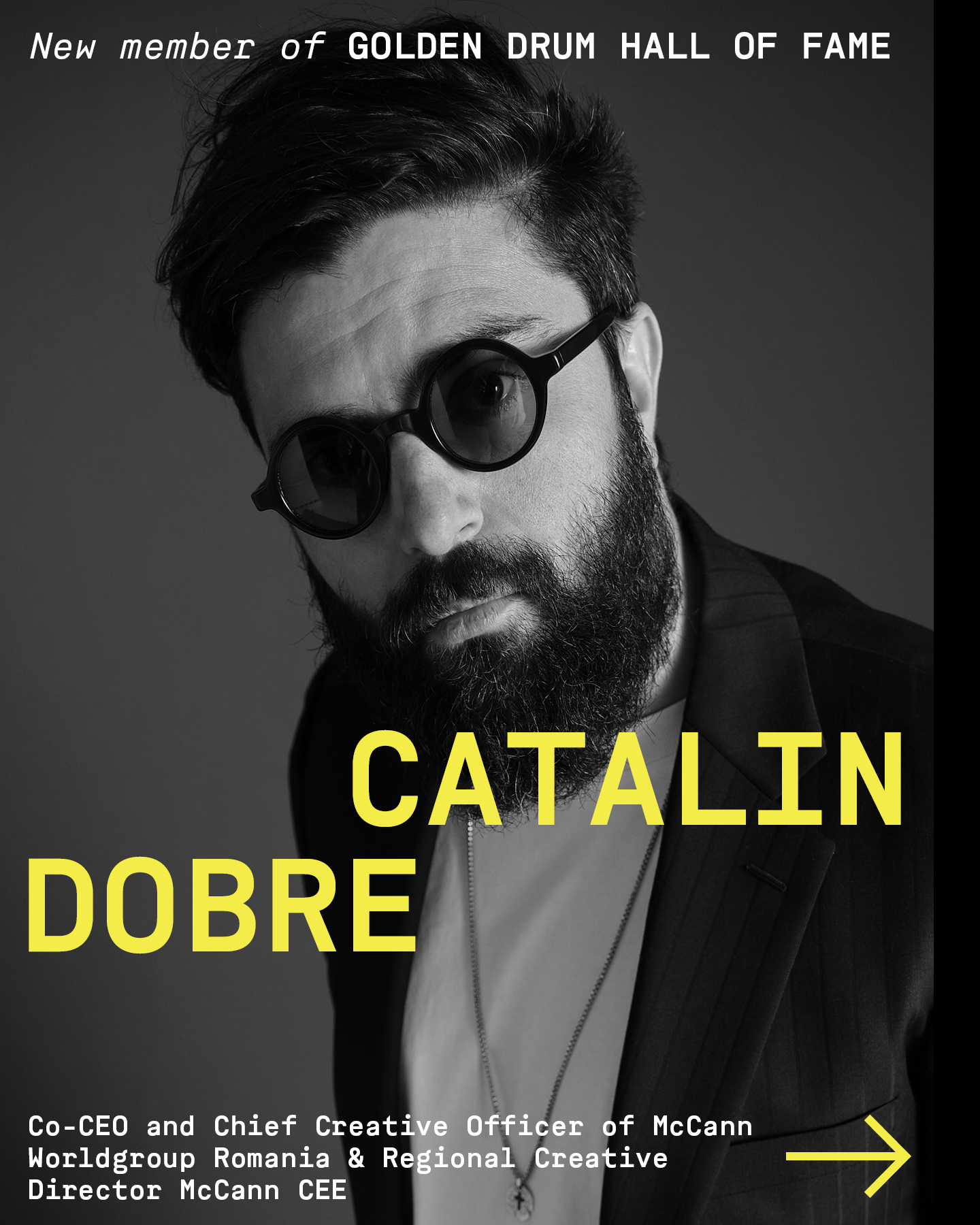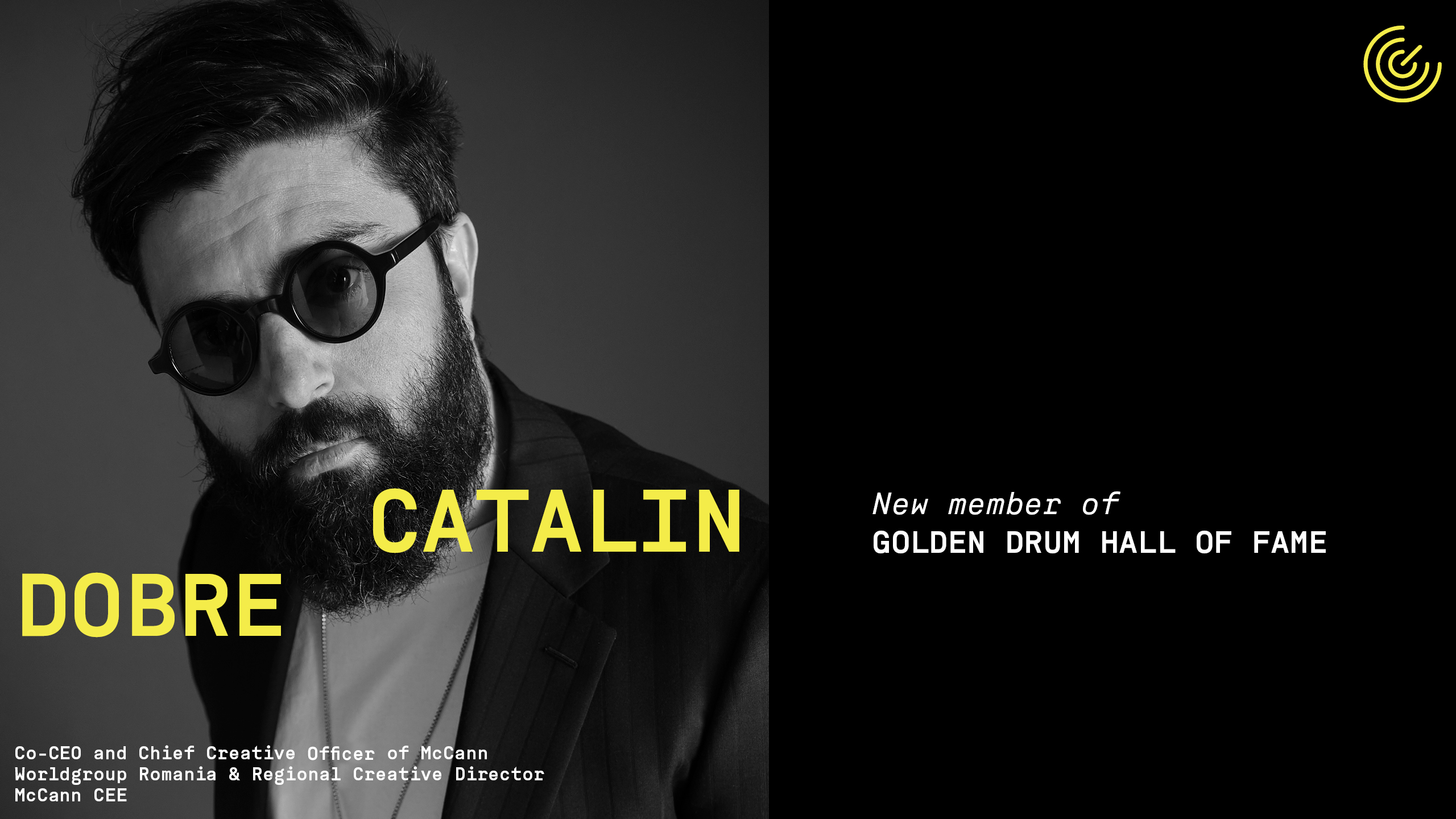 To dla nas zaszczyt i przyjemność powitać Catalina Dobrego, dyrektora współzarządzającego i kreatywnego McCann Worldgroup Romania, a także regionalnego dyrektor kreatywnego McCann w regionie CEE, w gronie członków Galerii Sław Festiwalu Golden Drum, składającą się ze staranie wyselekcjonowanej grupy wizjonerów i marzycieli, którzy z pasją i odwagą pracowali na rzecz rozwoju branży kreatywnej i jej wpływu na inne sektory.